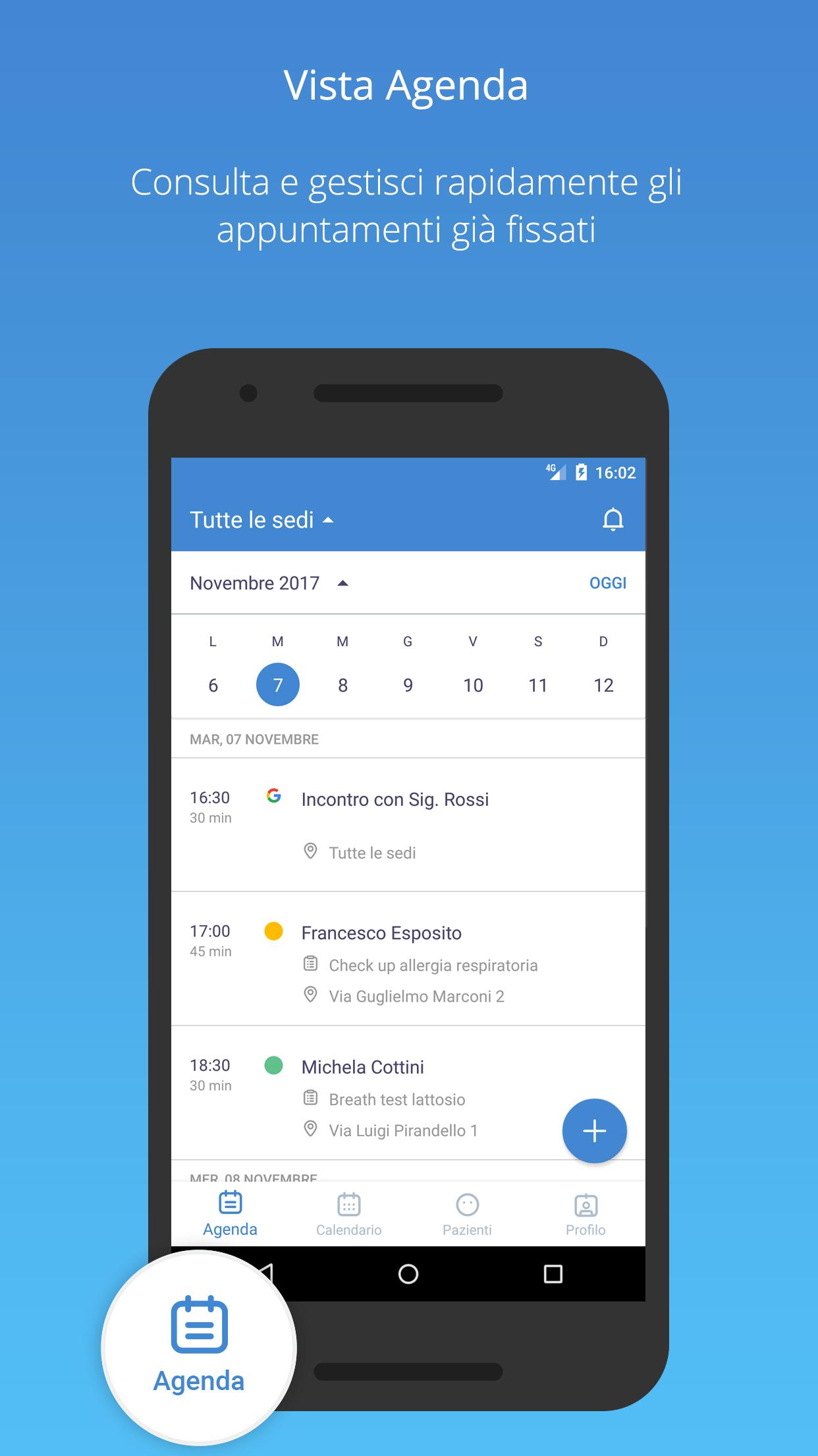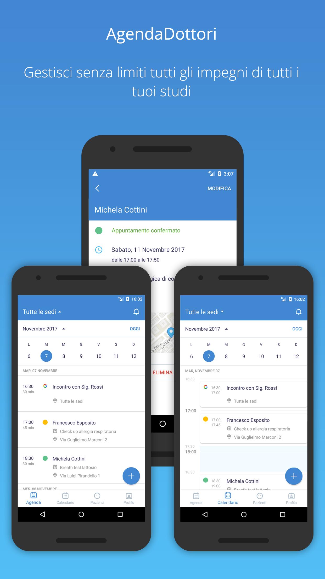 AgendaDottori adalah aplikasi agenda yang dibuat secara eksklusif oleh Doctori.it untuk dokter yang ingin selalu memiliki solusi dengan kebebasan yang khas dari perencana kertas, keterampilan berbagi aplikasi web dan pada saat yang sama alat yang membawa pasien baru dan komunikasi yang lebih baik dengan yang biasa ada.